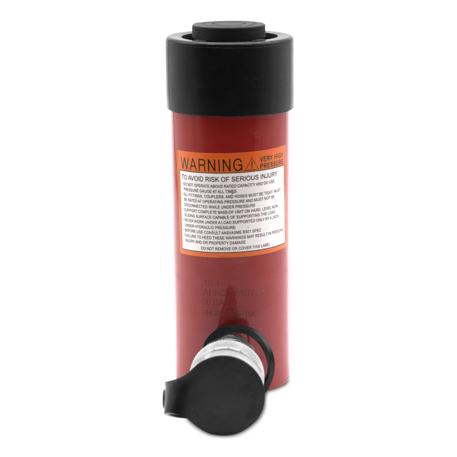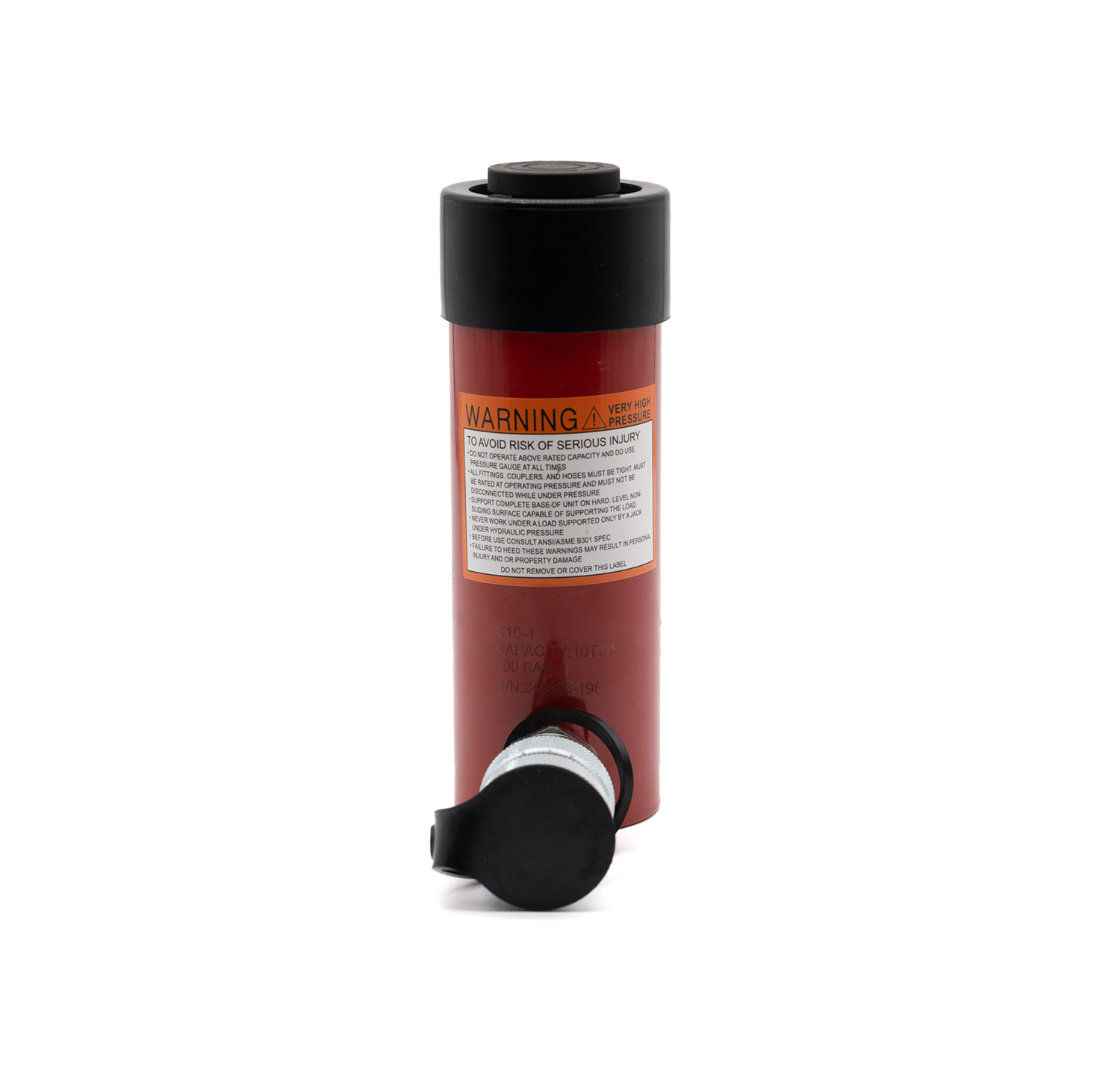 Manufactured from heavy-duty steel with a precision chrome-plated rod plunger, the C10-4 is built to withstand demanding, repetitive use. Its spring-return design enables quick retraction, while roll-burnished cylinder walls enhance seal life and efficiency. Featuring collar threads, base mounting holes, and a 3/8” NPTF high-flow coupler with protective dust caps, this hydraulic jack is field-ready and ANSI B30.1 compliant.