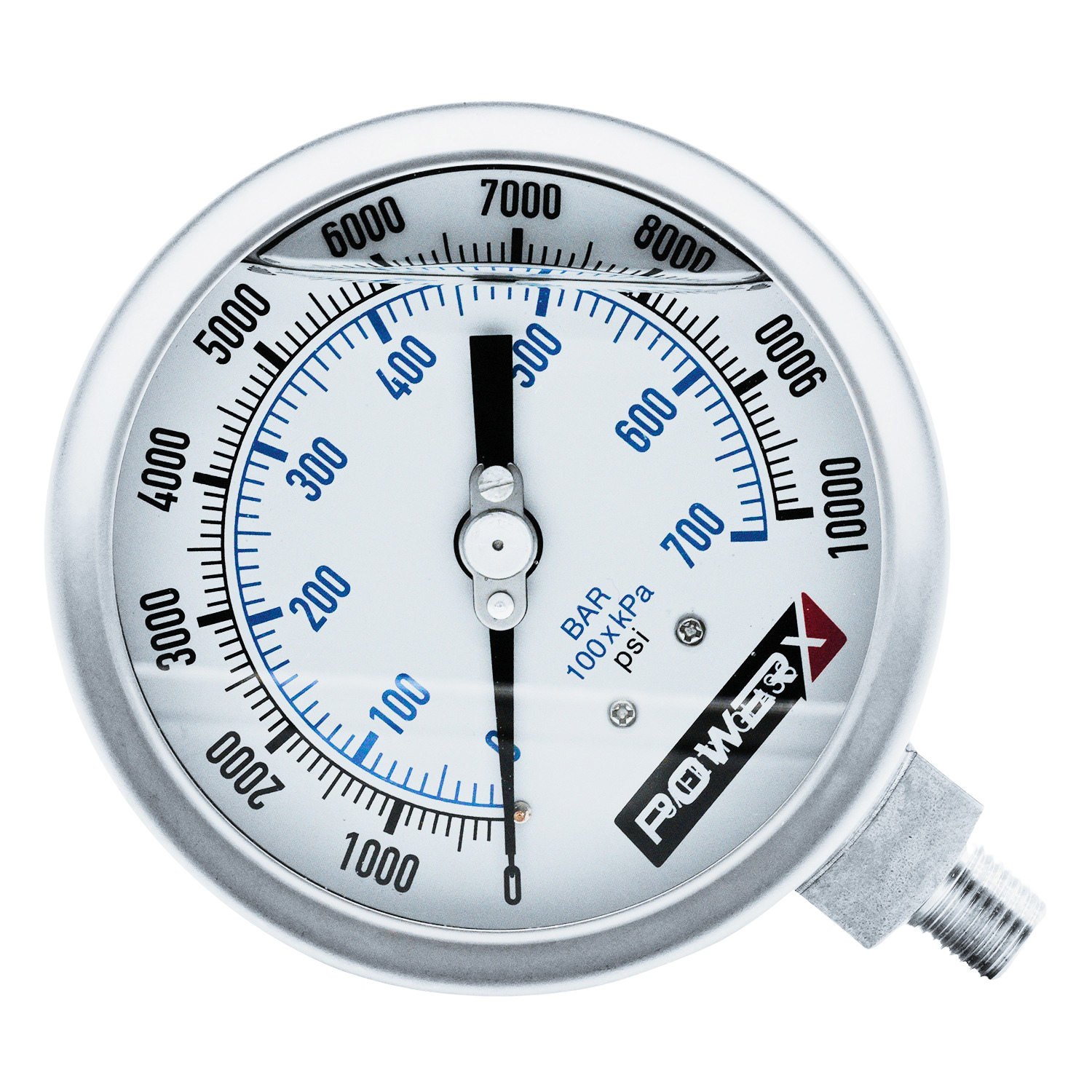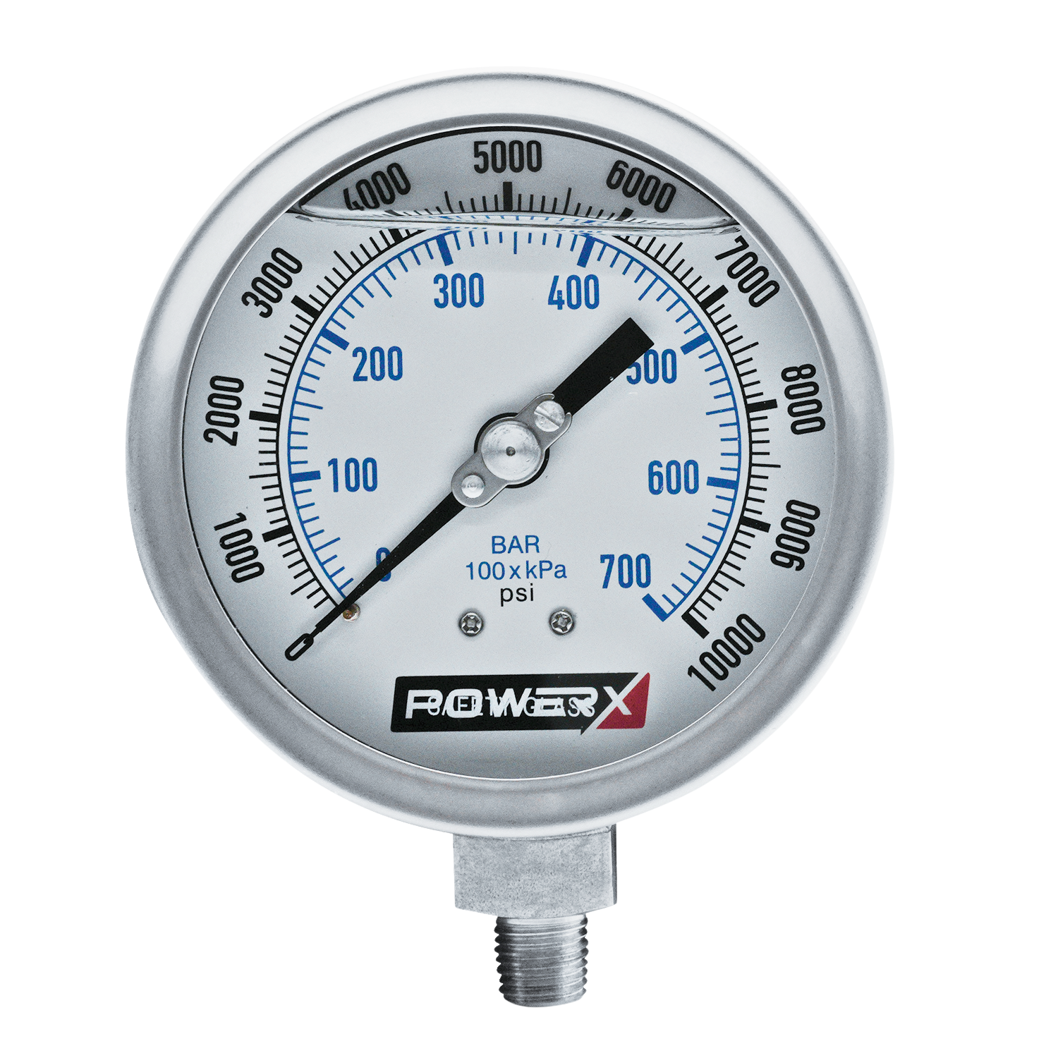 4″ DIA, S.S. case, liquid filled 1/4″ NPTF, 10,000psi Pressure Gauge